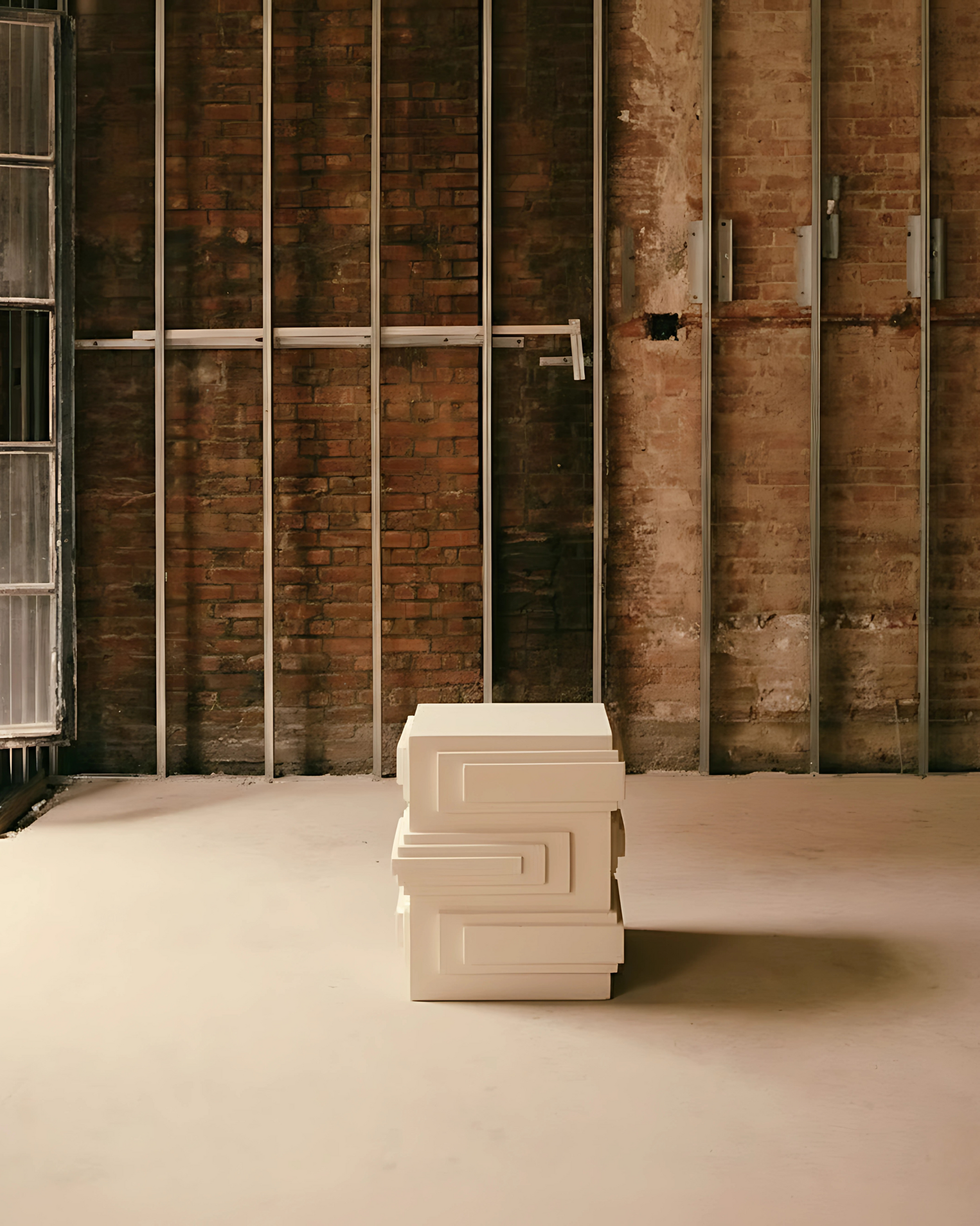 Bout de canapé au format généreux et à la construction géométrique, qui lui donnent une présence forte, à la fois sculpturale et élégante.