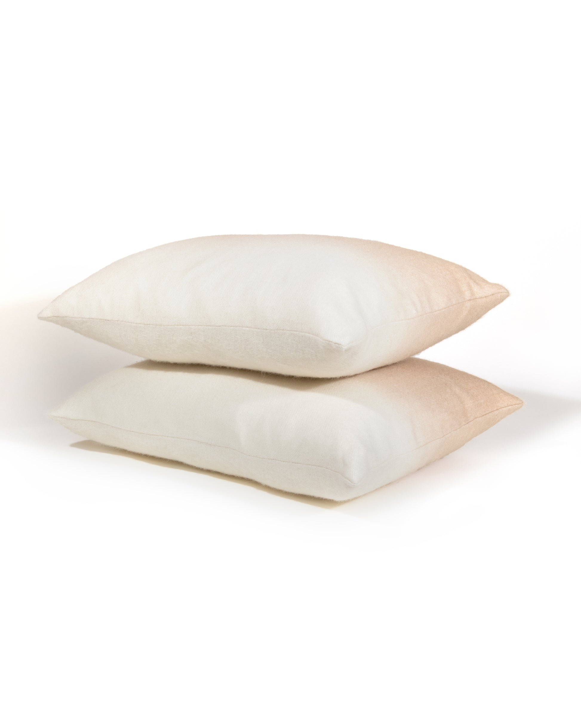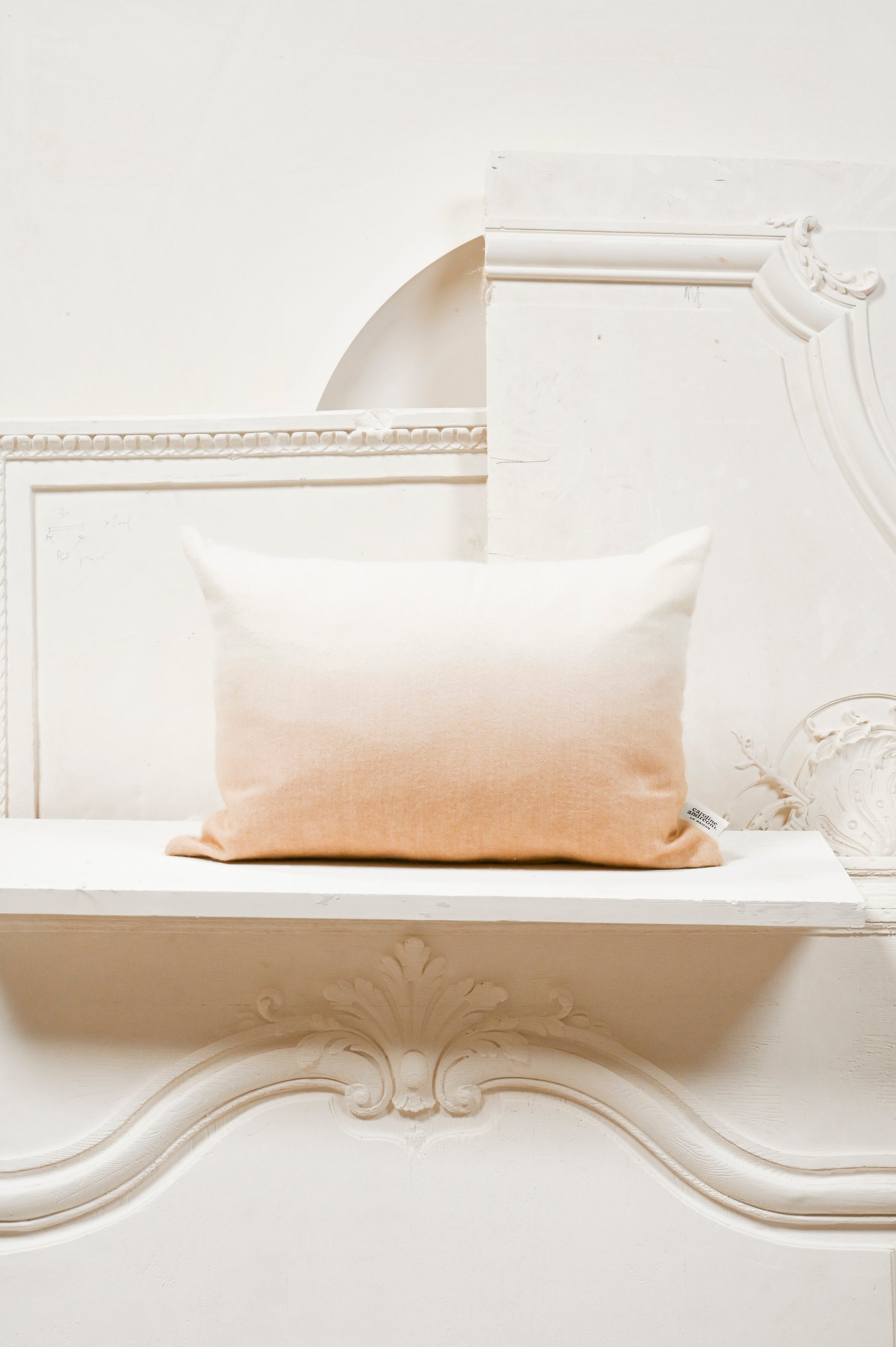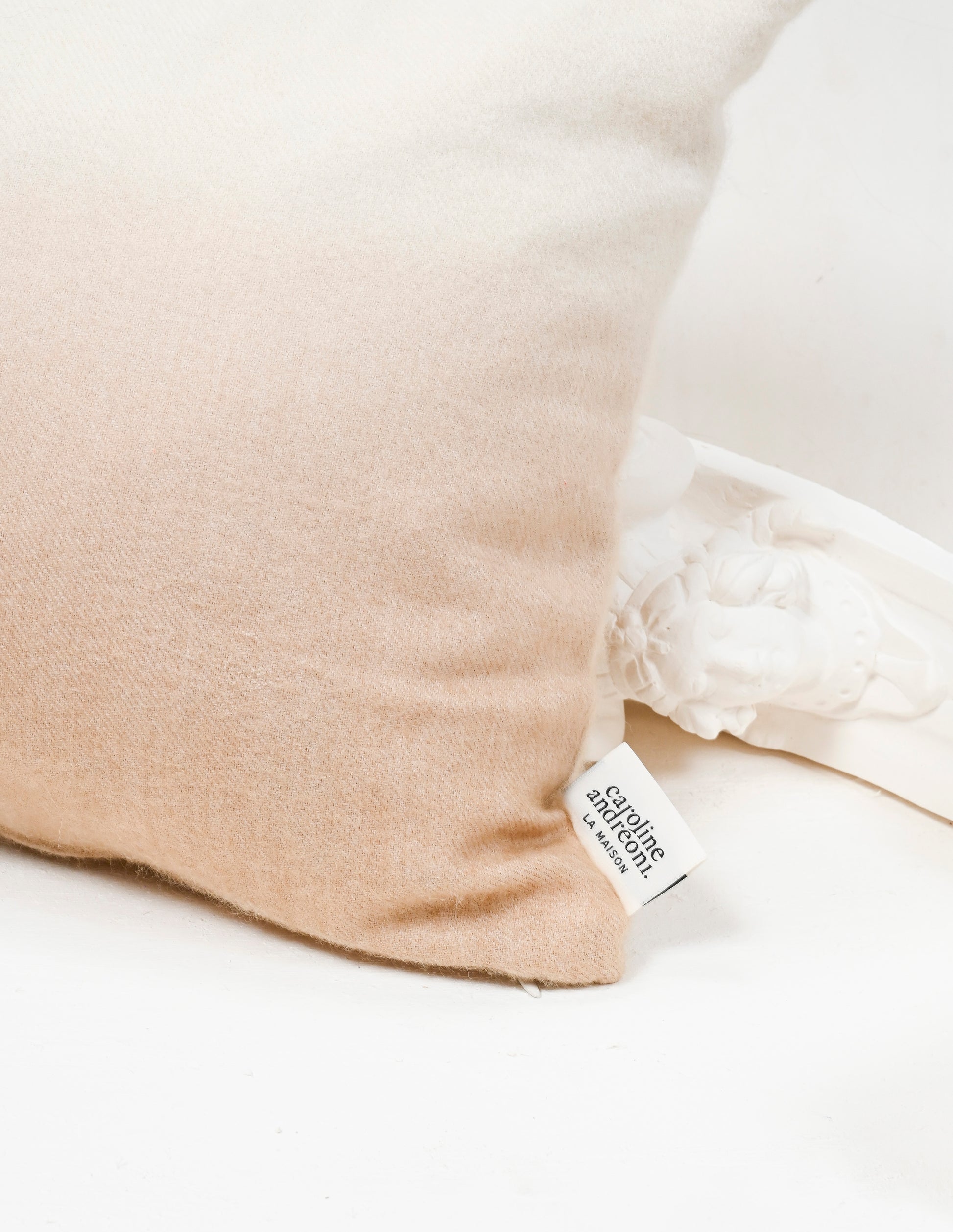 À accumuler sur un canapé ou sur un lit, ce coussin au dégradé de couleurs intemporelles et délicates est emblématique du style Caroline Andréoni.