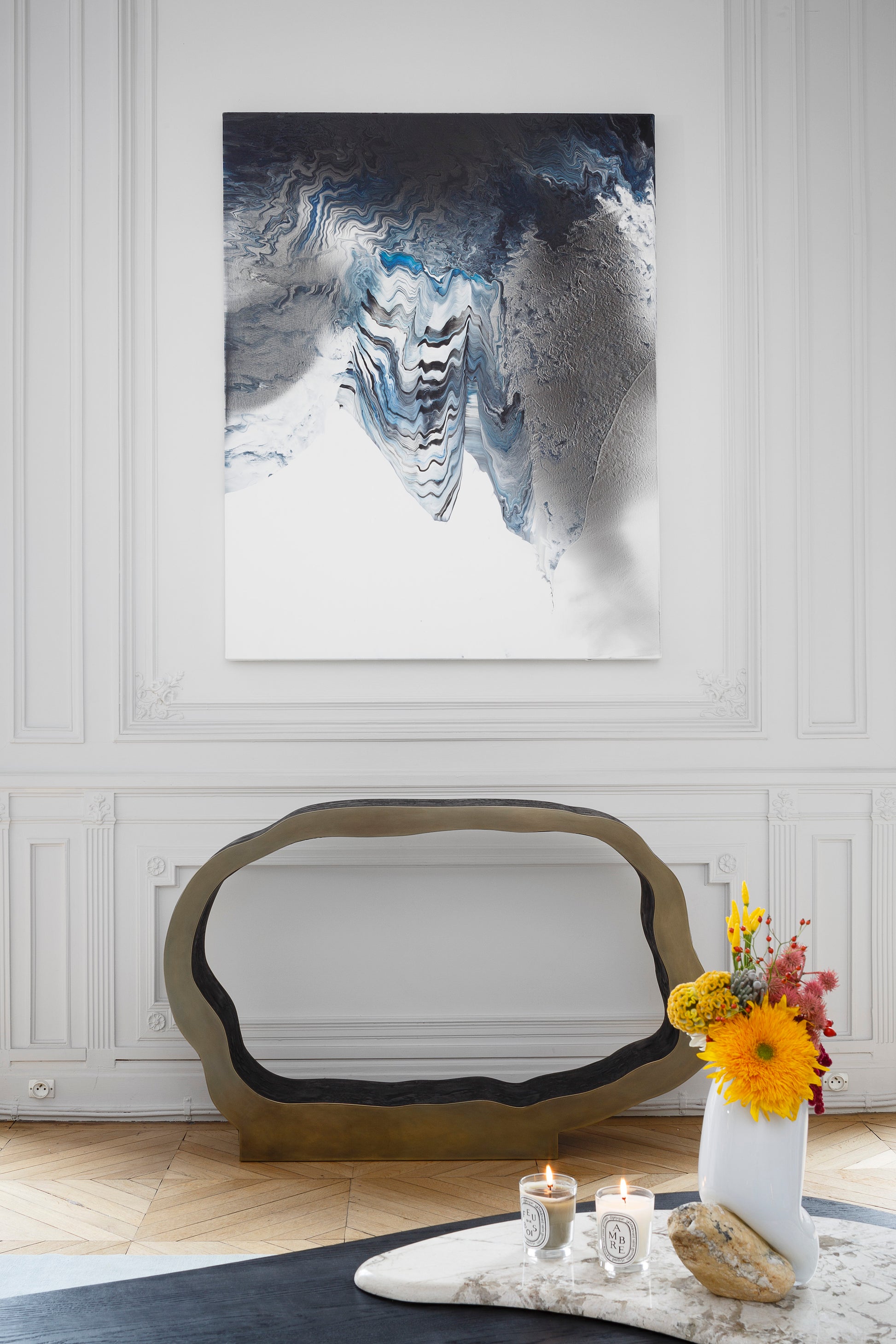 La Table basse Maho Stone en bois de chêne teinté est surplombée d'un majestueux plateau amovible en granite alpinus. Réinventée en exclusivité pour l'édition 2022 de l'exposition Private Choice, salon d’art et de design. Maho Stone repense notre table basse Maho, pièce emblématique de la collection Caroline Andréoni La Maison.
