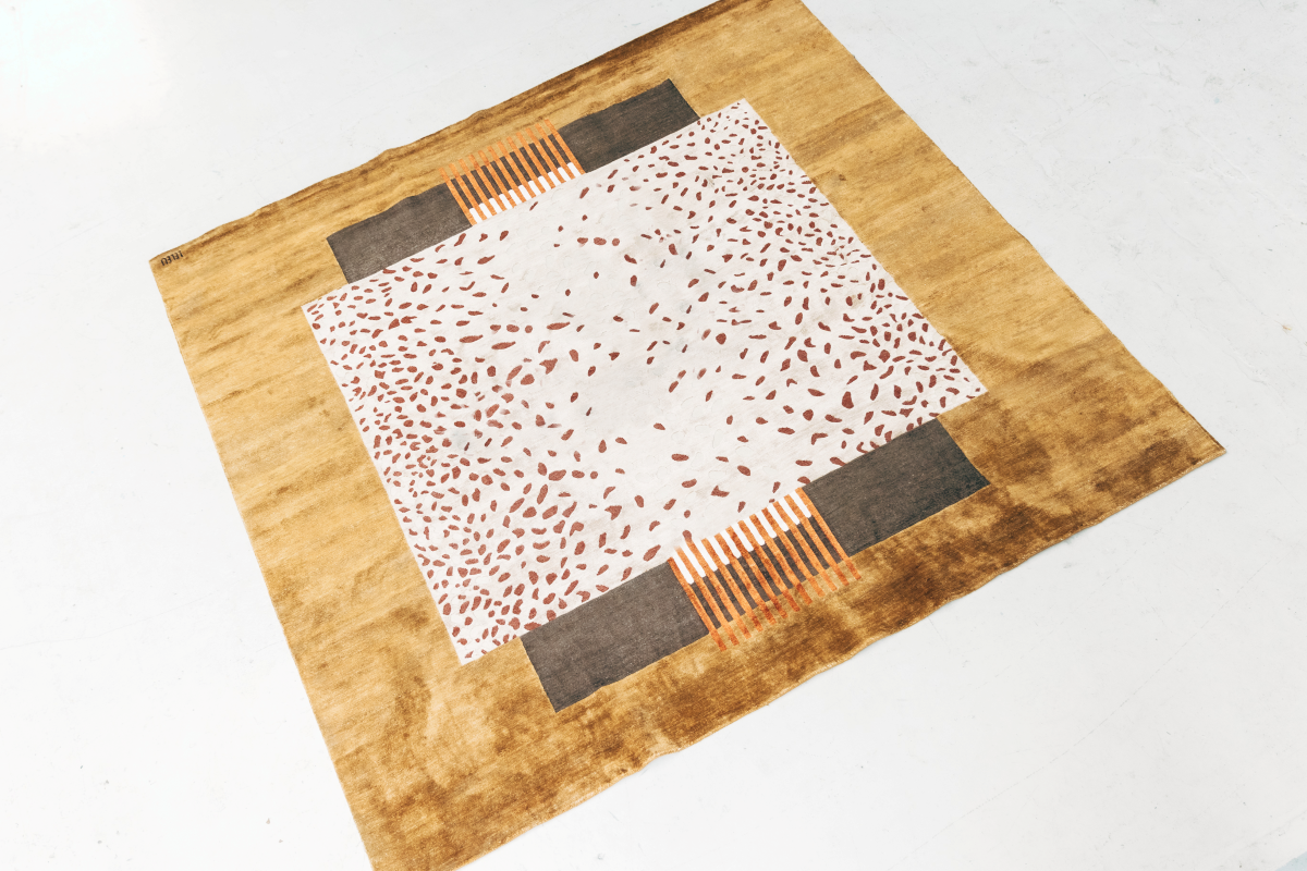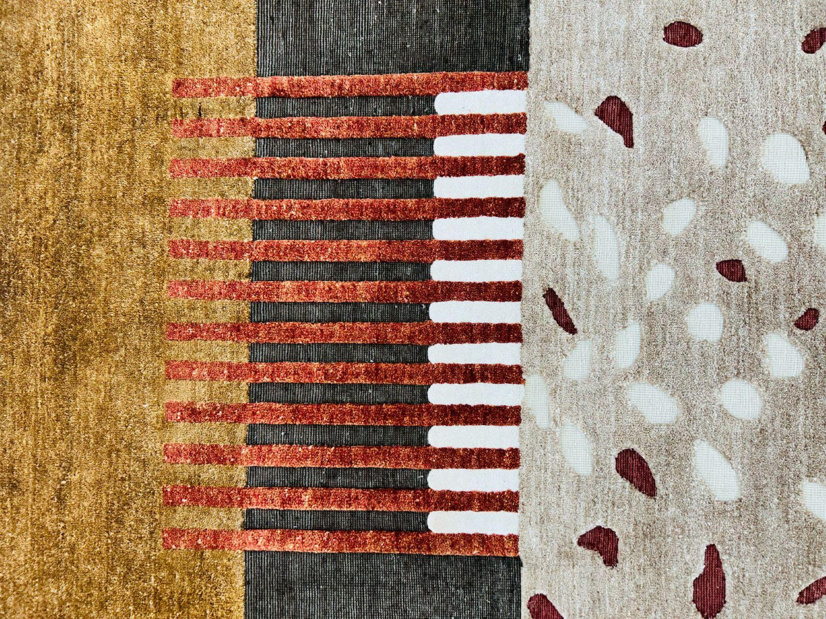 Le tapis Amalgame de Maison LELEU mêle tradition du nouage kilim et subtilité du velours coupé.